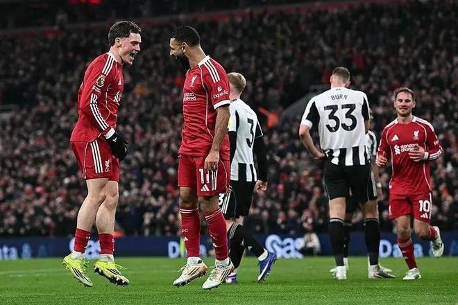 易边再战,利物浦继续掌握场上主动,第67分钟,萨拉赫倒三角传球,维尔茨抽射破门,利物浦3-1扩大比分领先优势。而在伤停补时第3分钟,纽卡斯尔门将波普扑救脱手,科纳特补射破门,利物浦最终4-1逆转大胜。